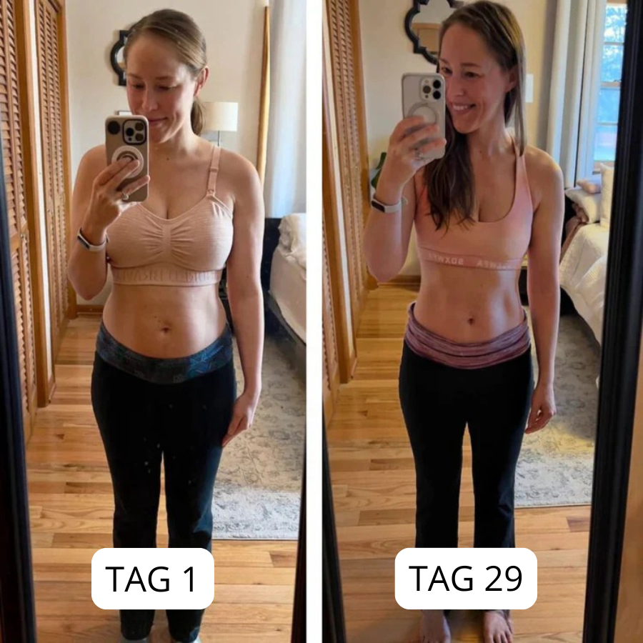 " Am Anfang habe ich nicht viel bemerkt, aber ich fühlte mich schwer und unwohl in meiner Kleidung. Nach ein paar Wochen fühle ich mich leichter und vor allem wieder viel wohler in meinem Körper. “